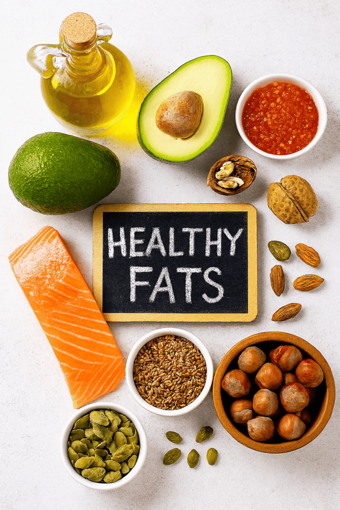 - Monounsaturated fats: Found in olive oil, avocados, and nuts like almonds and cashews.